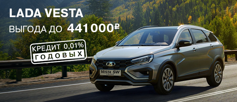* ПСК: 0,149%–35,599% годовых. Ставка по кредиту 0,01% действует при приобретении нового автомобиля LADA Vesta (ТС) по программе LADAВЫГОДНЫЙ. Валюта кредита — рубли РФ; первоначальный взнос — от 60%; срок кредита — 12 мес.; сумма кредита — от 200 000 руб. Предложение действует при условии единовременного оформления на ТС договора имущественного страхования КАСКО в любых страховых компаниях, выбранных заемщиком и соответствующих требованиям Банка. Возврат кредита — ежемесячные (аннуитетные) платежи. Обеспечение — залог приобретаемого ТС. Действительно до 31.10.2025. Предложение ограничено. Не оферта.