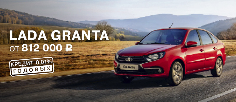 - Выгода 20%  (25% для жителей Дальнего Востока) от стоимости новой LADA Granta по Госпрограмме автокредитования.